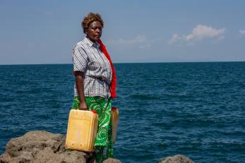 « Actuellement, il n’y a pas d’eau en quantité suffisante. J’ai vu les gens se bousculer pour pouvoir accéder à l’eau. Il y en a qui passent la journée entière à faire la queue à la borne fontaine pour avoir de l’eau », dit-Madeleine Kabuo, 42 ans, mère de huit enfants, se penchant pour remplir un bidon d'eau du lac de la plage du peuple du quartier Himbi.